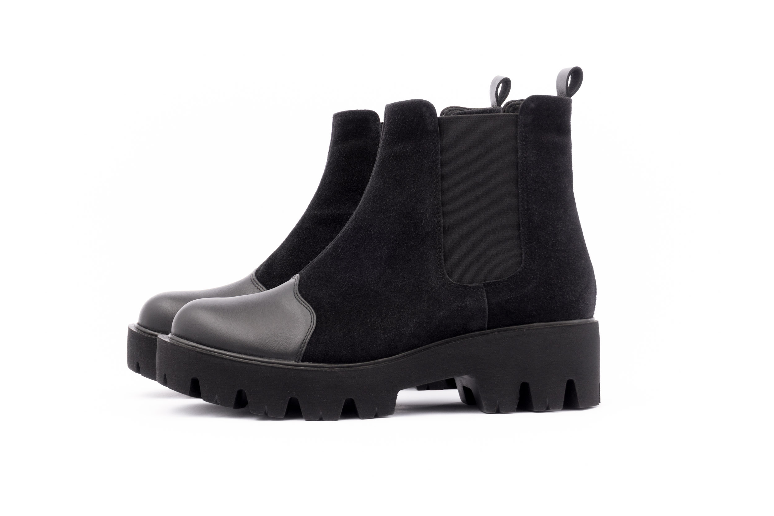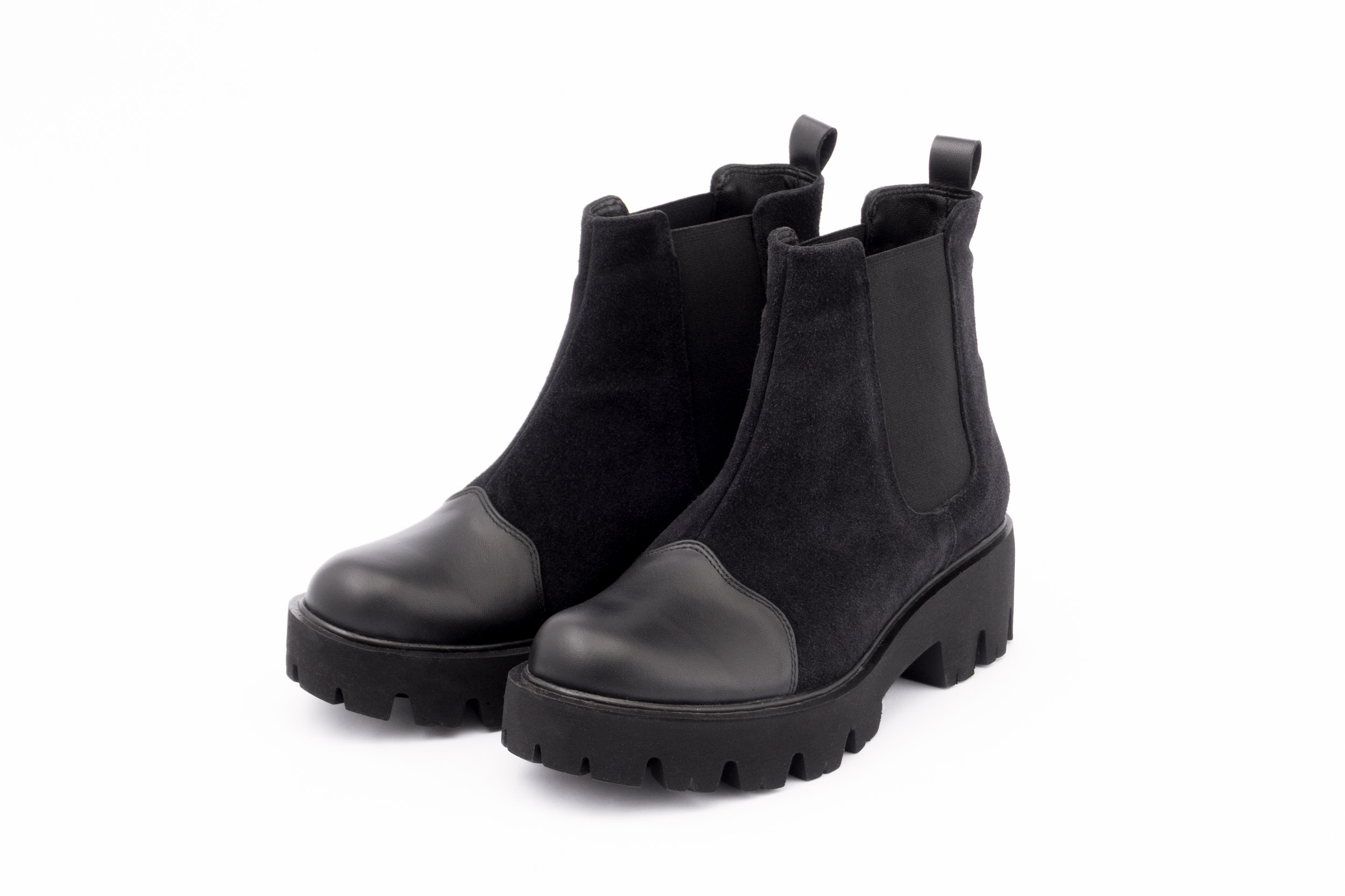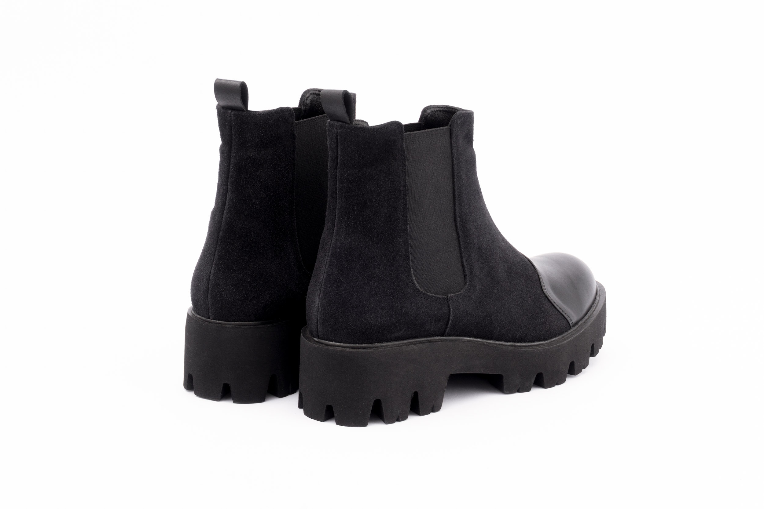 Ghete Theo realizate din piele întoarsă neagră, cu vârful din piele nappa neagră.